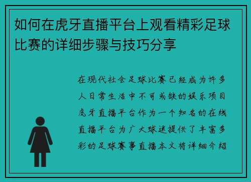 如何在虎牙直播平台上观看精彩足球比赛的详细步骤与技巧分享