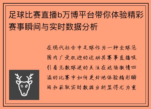 足球比赛直播b万博平台带你体验精彩赛事瞬间与实时数据分析